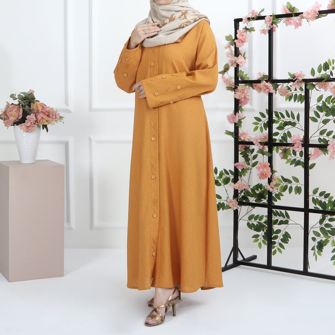 A beautiful modest and elegant abaya. This is ideal for wearing on every occasion. Made with karandi fabric for winter season, it is beautiful abaya with hand work on sleeves attractive color, beautiful look abaya, without scarf.