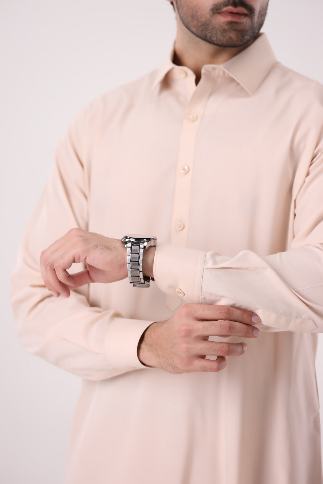 The essence of understated luxury, this suit is tailored from the finest smooth fabric for a flawless drape and a look of pure, quiet refinement.