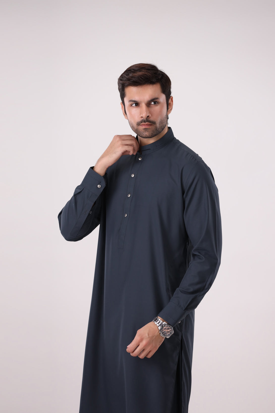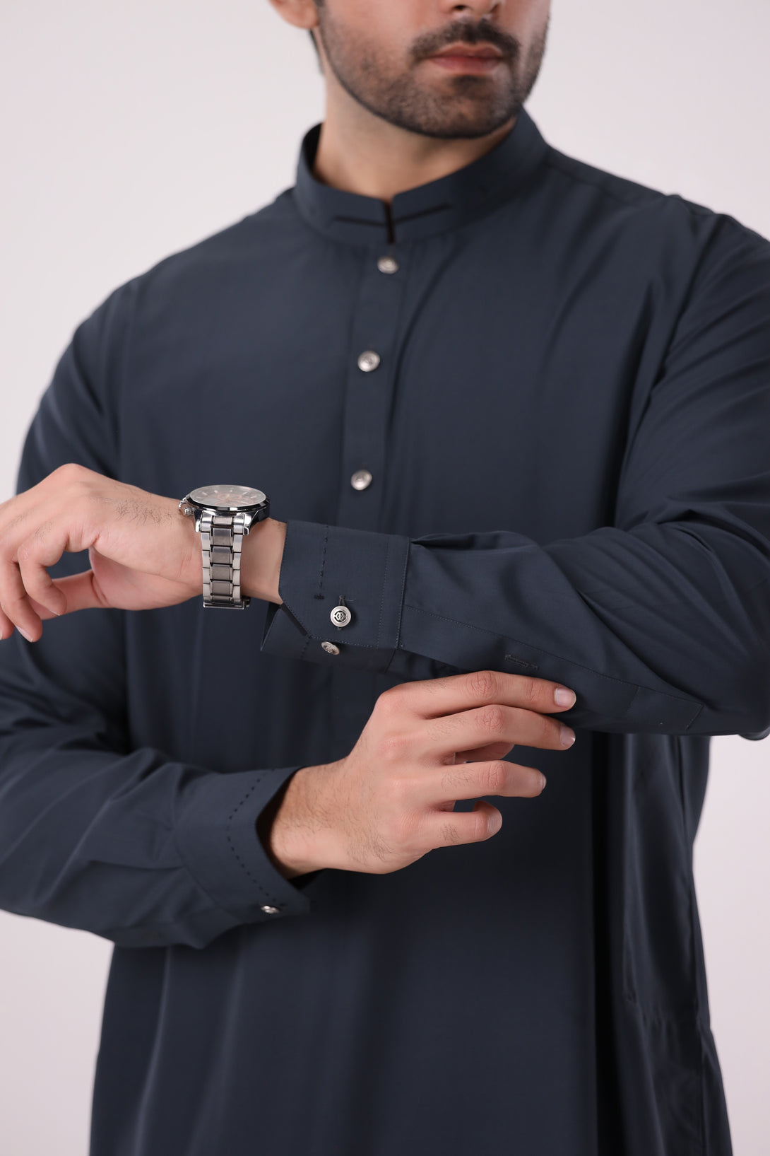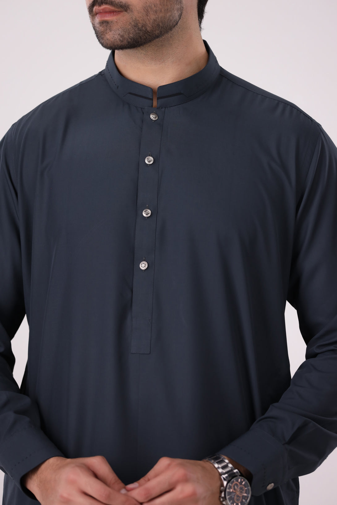 Discover understated luxury in this contemporary teal suit, where fine, artisanal stitching and custom metallic buttons elevate a classic silhouette to a new level of sophistication.