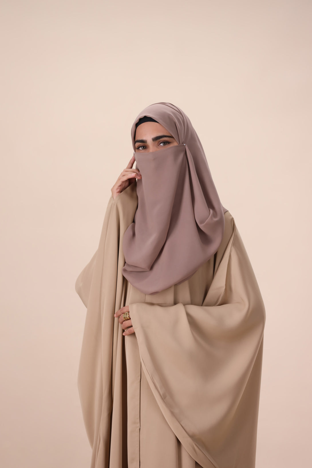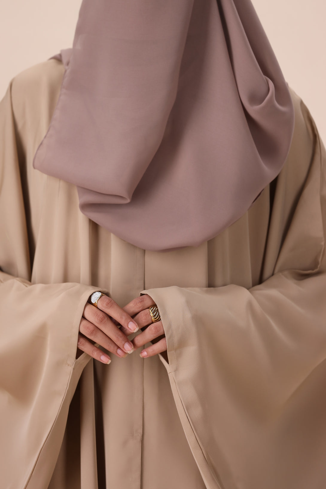 Discover how the soft, flowing fabric and neutral tone of this abaya bring an effortless sense of calm to your wardrobe.