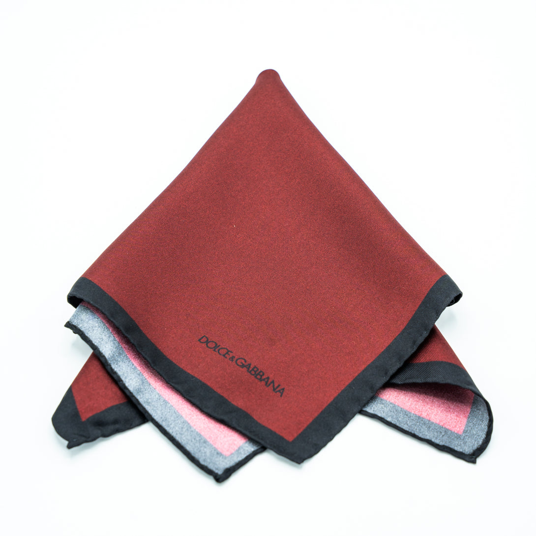 Add a pop of rich color to your look with this Dolce & Gabbana pocket square, featuring a subtle texture and a contrasting black border for refined elegance.