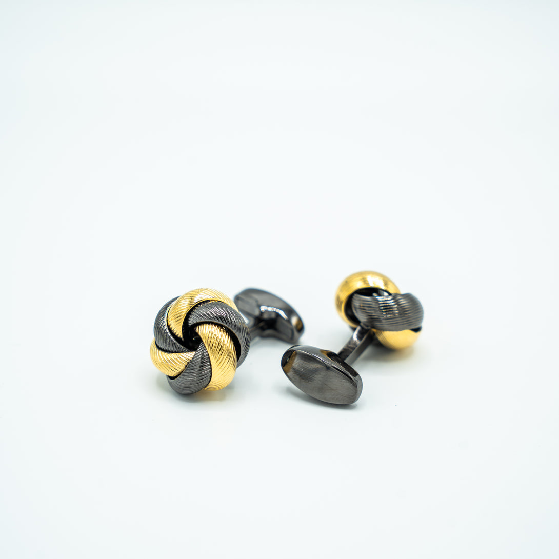 A striking two-tone design where contrasting tones intertwine to create a bold, modern twist on a classic knot cufflink.