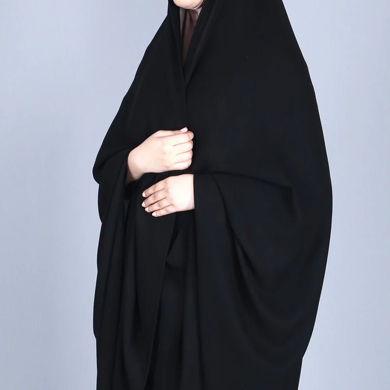 This irani chaddar in Indonesian chiffon fabric Its length from back side 57.5 inches and front side length is 49 inches. It is so easy to wear and cover head, face and all body. It drapes gracefully to be wrapped in any iconic style.