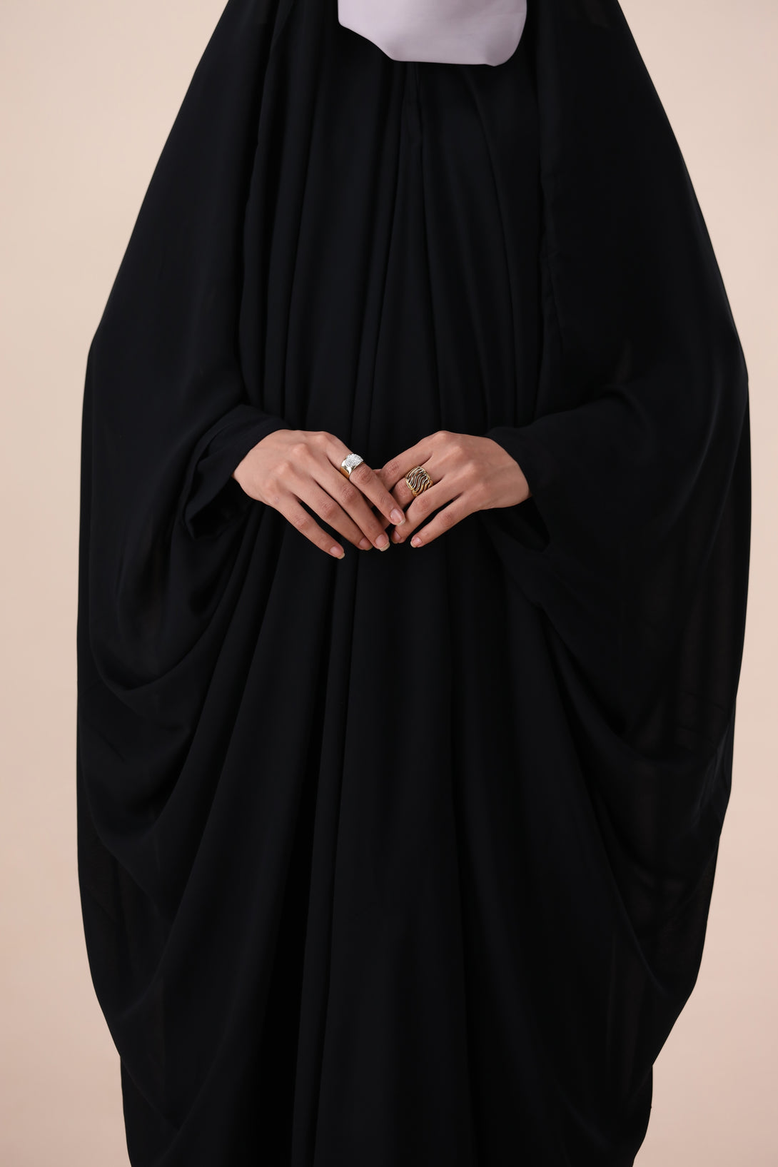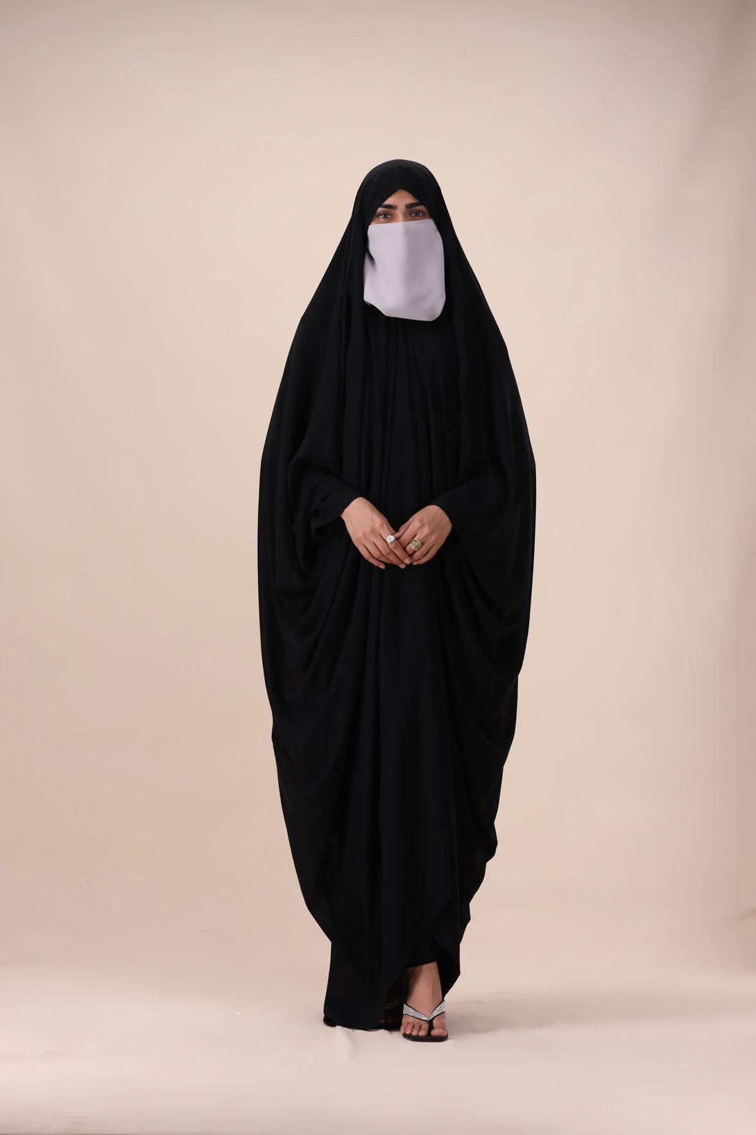 This irani chaddar in Indonesian chiffon fabric Its length from back side 57.5 inches and front side length is 49 inches. It is so easy to wear and cover head, face and all body. It drapes gracefully to be wrapped in any iconic style.