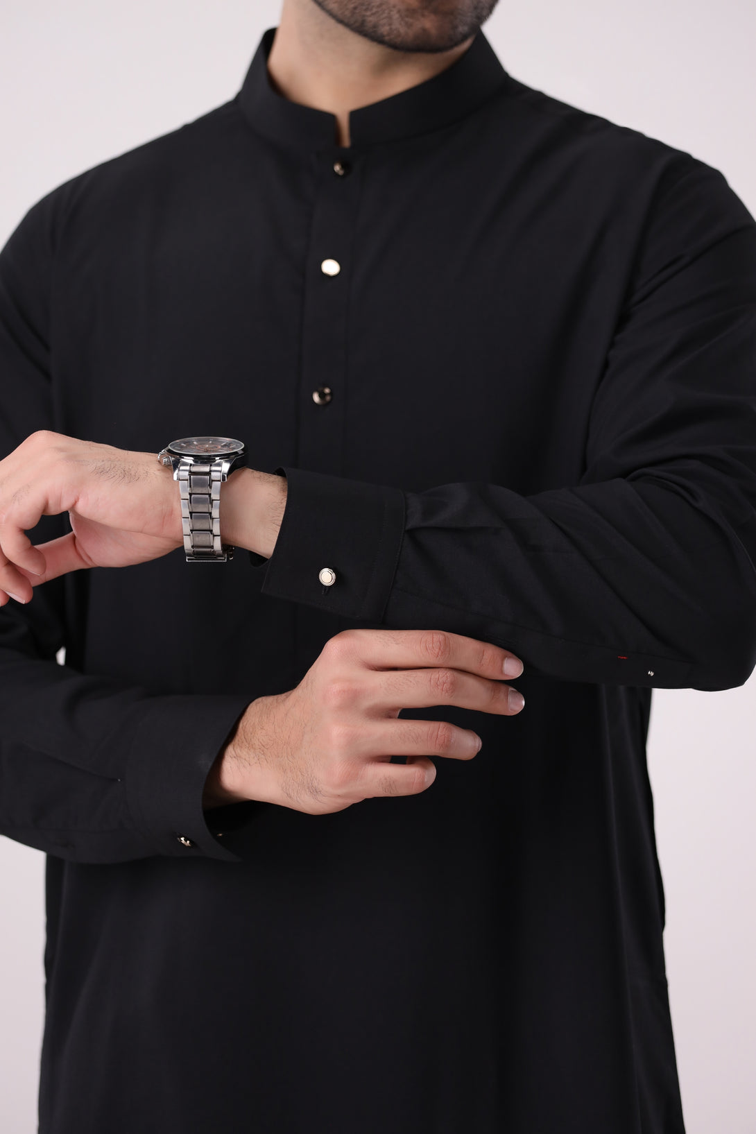 A statement in pure luxury, this suit is designed for the most discerning gentleman, combining polished gold buttons with the rare sophistication of French Cuffs.
