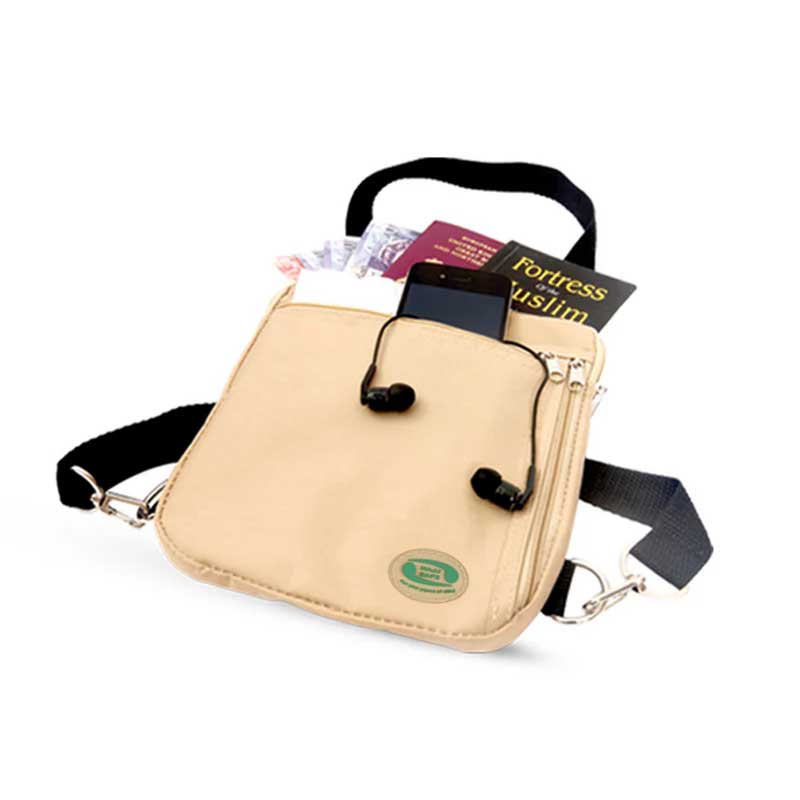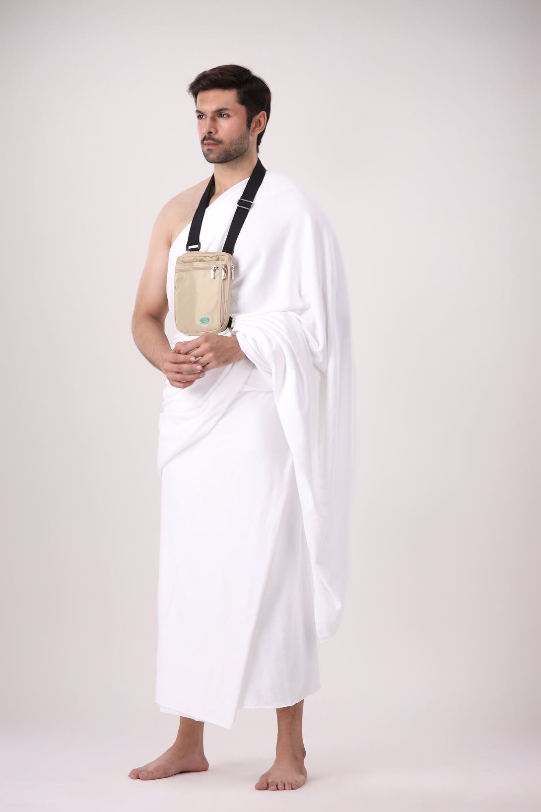 Introducing our Neck Bag, meticulously designed for both women and men embarking on the transformative journeys of Hajj or Umrah. This secure bag features three zippered pockets, ideal for safely carrying all your essential items.