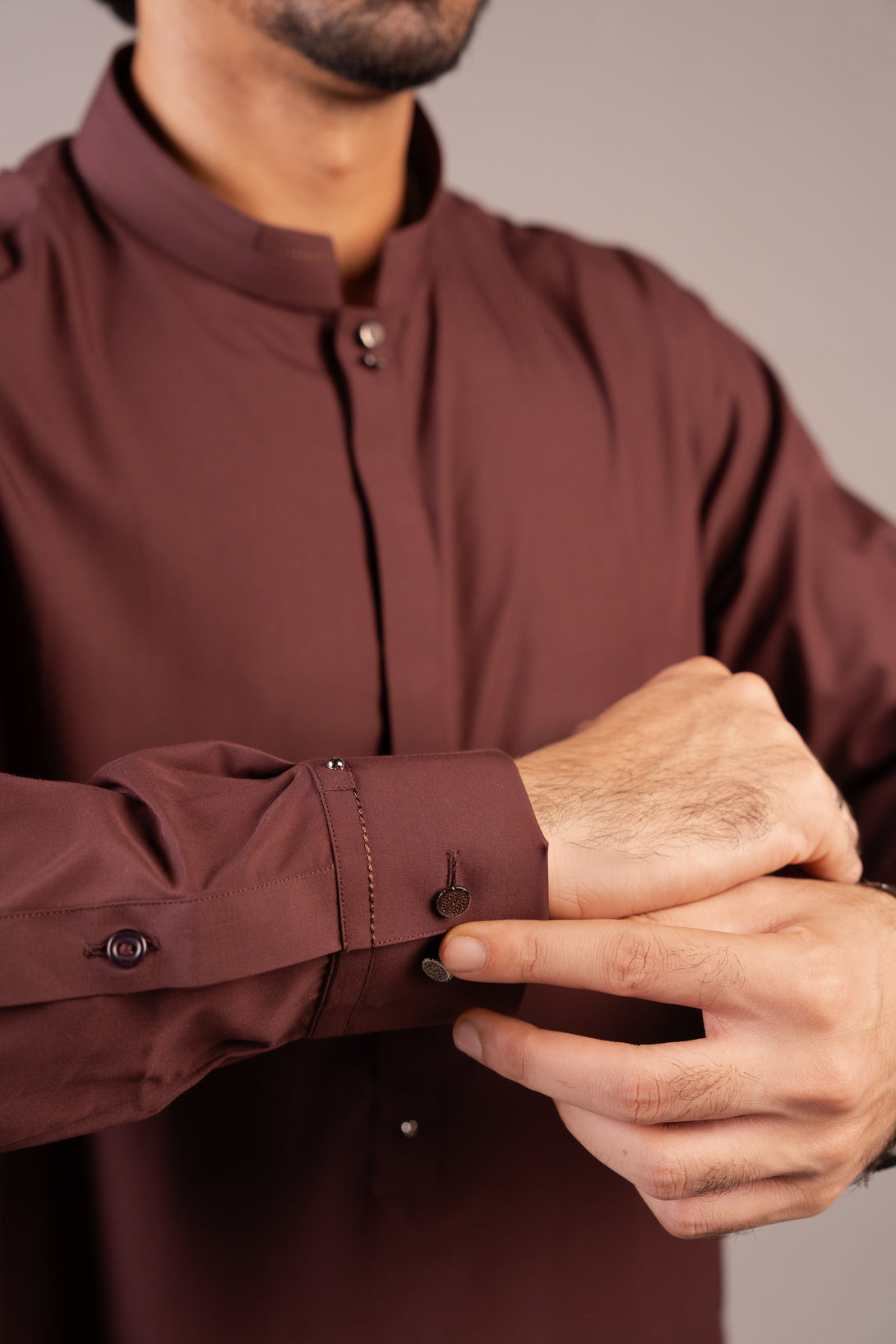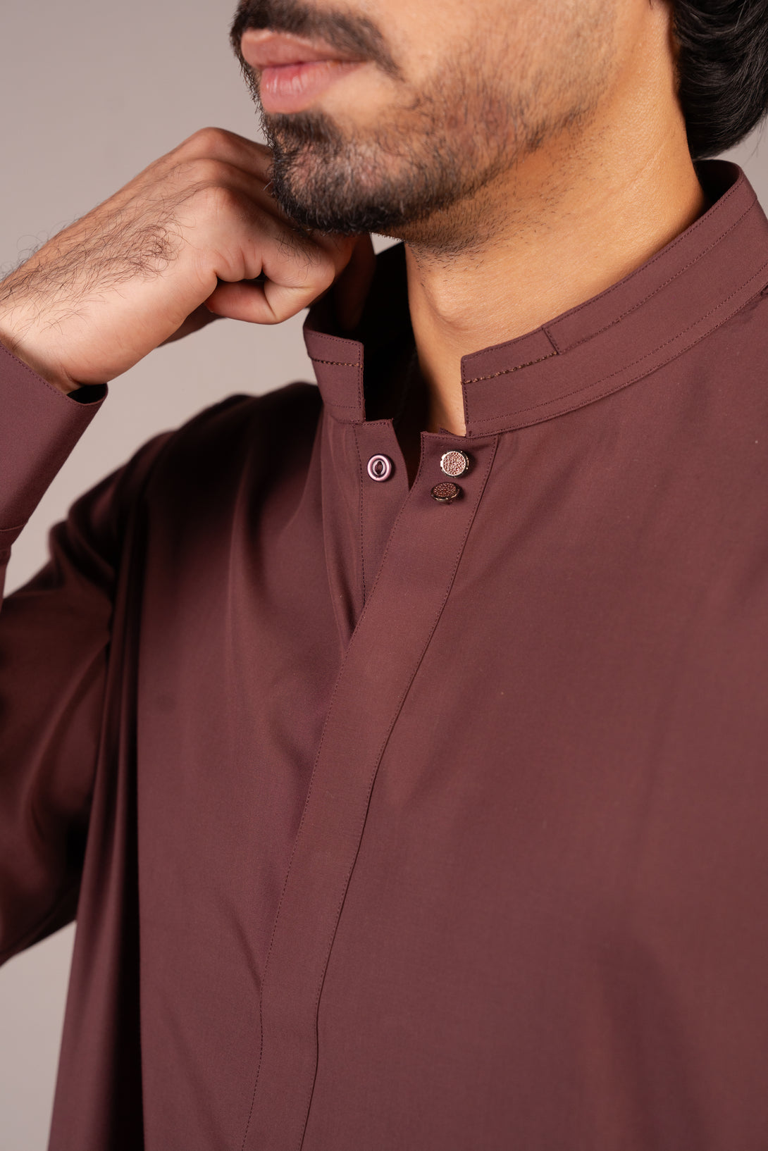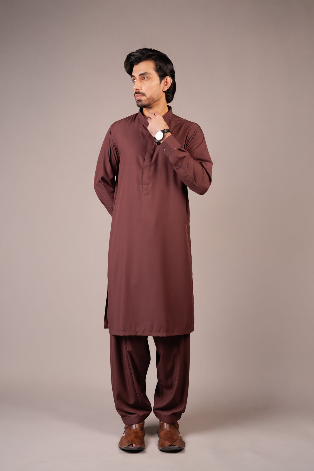 This Shalwar Qameez features a rich chocolate brown color and is made from a smooth, lightweight fabric ideal for both formal and casual wear. The Qameez has a classic straight cut design with side slits, a band collar.