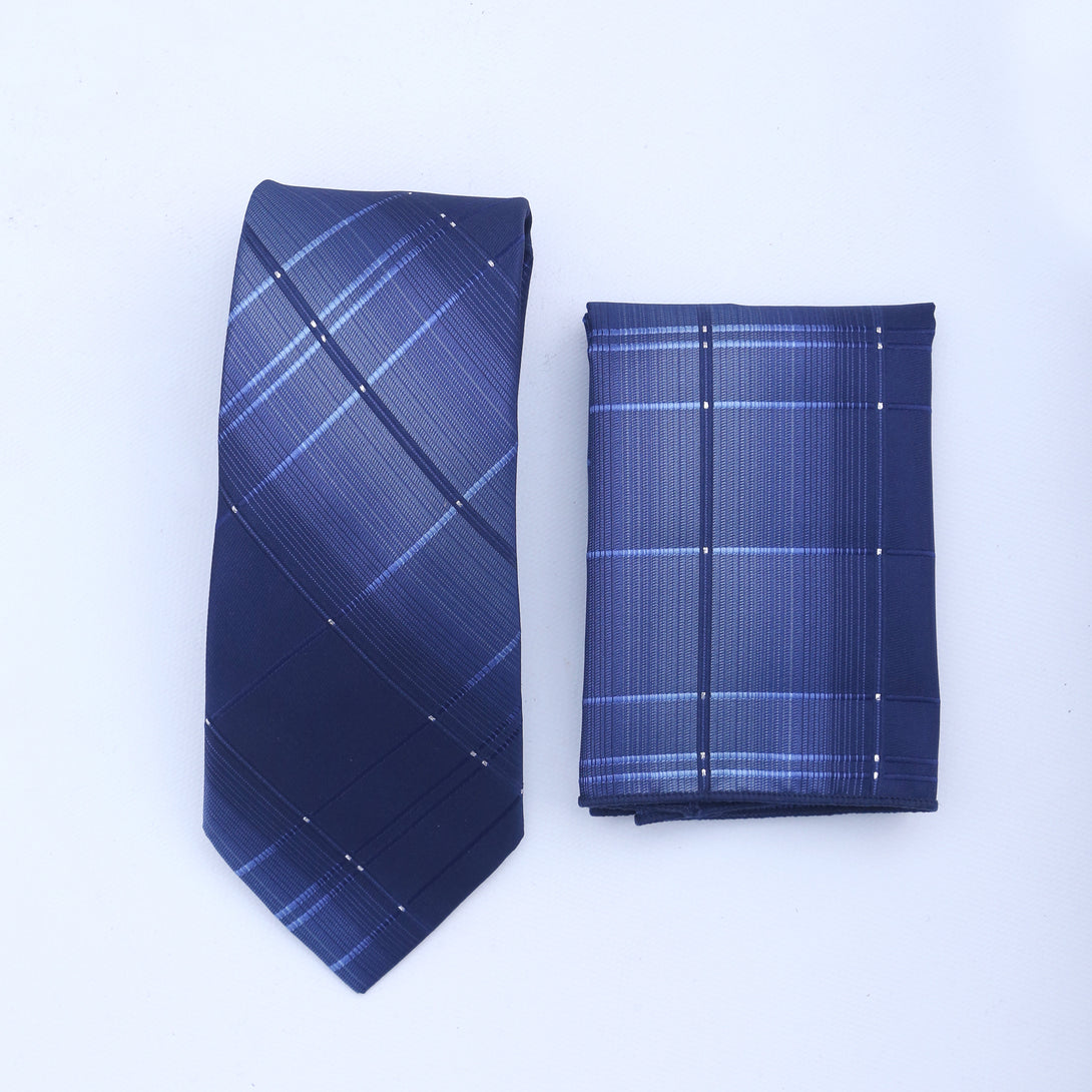 BLUE TEXTURE TIE AND POCKET SQUARE